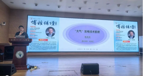 8月26日上午,合肥一六八中学第180期博雅讲坛面向高一年级新生开讲。为高一新生带来“‘大气’发电技术前瞻”的主题讲座,带领学生展开了一场关于大气发电技术的奇妙探索之旅。这也是合肥一六八中学2025级新生参加的首场“博雅讲坛”。