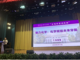 5月10日上午,清华大学化学系张莹莹教授走进成都教科院附中,张莹莹教授以《魅力化学——化学魔法赋能未来穿戴》为主题,通过柔性电子皮肤、自修复材料及可穿戴医疗设备等案例,带领学生领略化学在智能材料领域的创新突破,阐释了化学如何通过分子设计推动技术革新,并鼓励学生“从生活现象中挖掘科学灵感”。